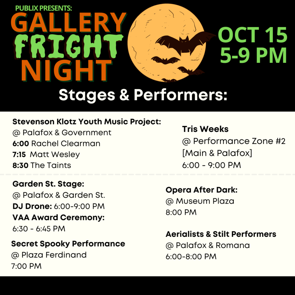 No performers have yet been announced for the upcoming Gallery Night. If you are interested in participating, fill out this form and we will consider you for the upcoming event.